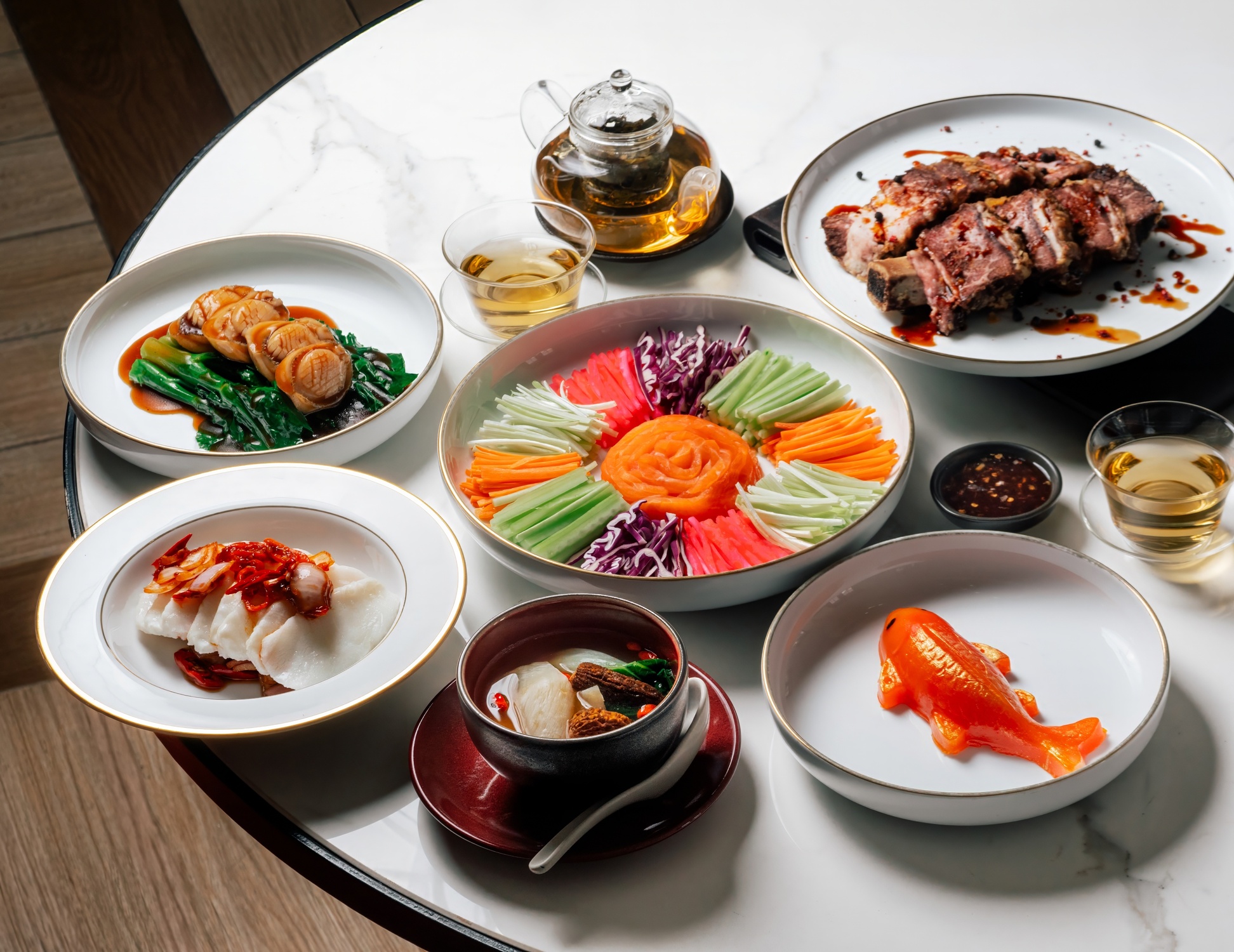 ที่โรงแรมแบงค็อก แมริออท มาร์คีส์ ควีนส์ปาร์ค (Bangkok Marriott Marquis Queen’s Park) เชฟ Oscar Pun นำเสนอประสบการณ์การรับประทานอาหารสุดพิเศษที่พาโกด้า ไชนีส เรสเตอรองท์ (Pagoda Chinese Restaurant) ตั้งแต่กล่องของขวัญที่ออกแบบอย่างสวยงาม ไปจนถึงธรรมเนียมการรับประทานหยี่ซัง (Yu Sheng) ซึ่งก็คือ สลัดมงคลแห่งความสมบูรณ์พูนสุข และเซตเมนูชุดใหญ่สำหรับรับประทานทั้งครอบครัว เชื่อว่าแขกทุกท่านจะมีตัวเลือกที่ตรงใจสำหรับการฉลองต้อนรับปีมะเส็ง หรือหากต้องการประสบการณ์ที่แตกต่าง สามารถเลือกไปใช้บริการที่เอเชียทีค แอนเชี่ยนท์ ที เฮ้าส์ (Asiatique Ancient Tea House) ร้านอาหารที่ตั้งอยู่ในบ้านริมแม่น้ำอายุนับร้อยปีที่ได้รับการบูรณะอย่างพิถีพิถัน เพื่อลิ้มลอง “Flavors of Fortune” กับเมนู à la carte สุดพิเศษ เช่น หยี่ซังแซลมอน (Yu Sheng salmon) หอยเป๋าฮื้อตุ๋น (braised abalone) และซี่โครงหมูกรอบเจงกิสข่าน (Genghis Khan crispy short ribs) เพื่อเสริมมงคลและโชคลาภตามธรรมเนียมของเทศกาลตรุษจีนที่สืบทอดมายาวนาน